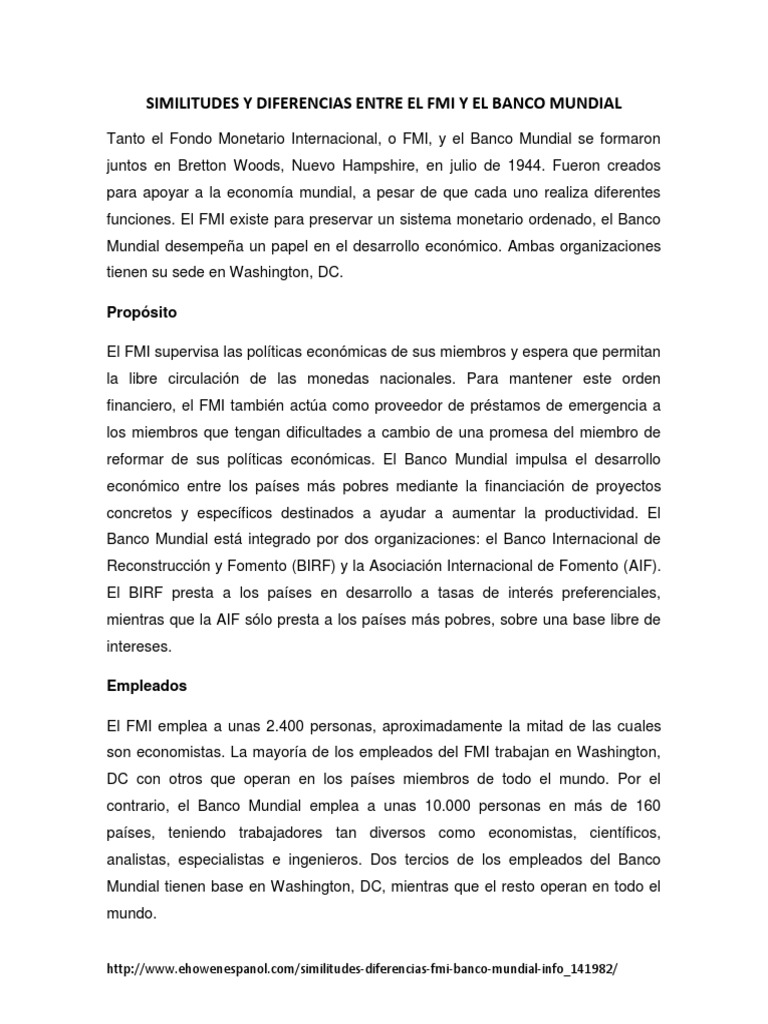 Diferencias Entre Banco Mundial Y Fmi